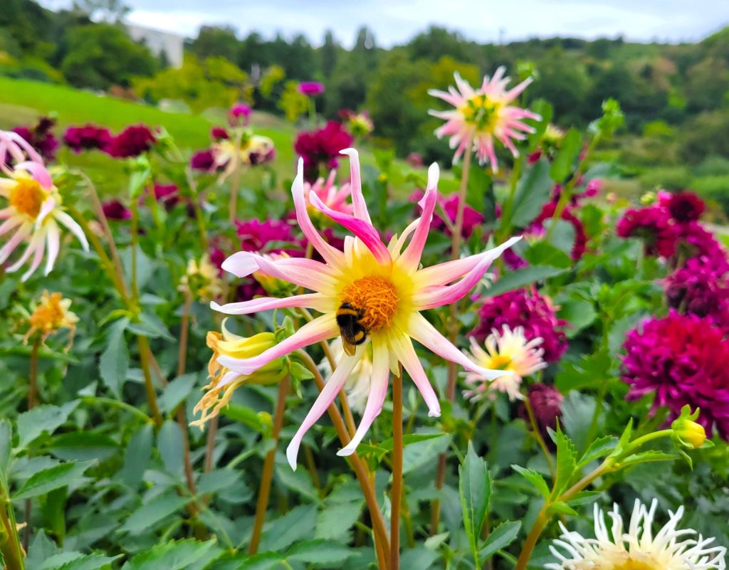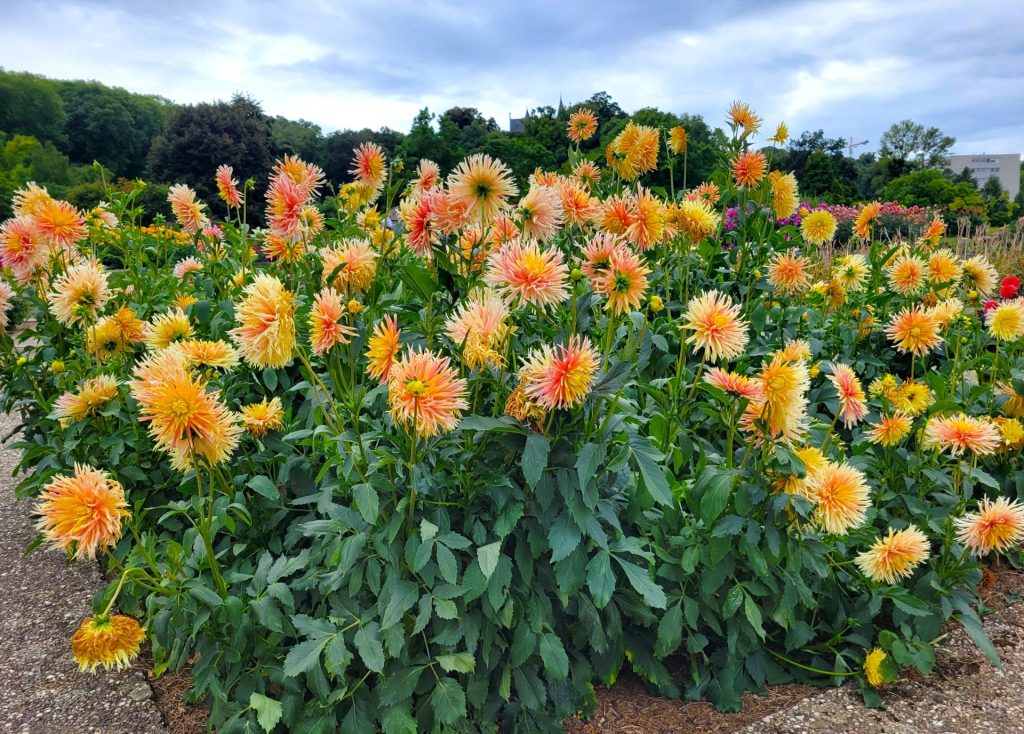 We visited near the height of dahlia season, and their displays were incredible. For the second time in our lives, we were able to enjoy a dedicated dahlia garden. This one was much larger than the first one we found in Lille. It had many more plants and lots of great variety. The bees were so happy and so were we.