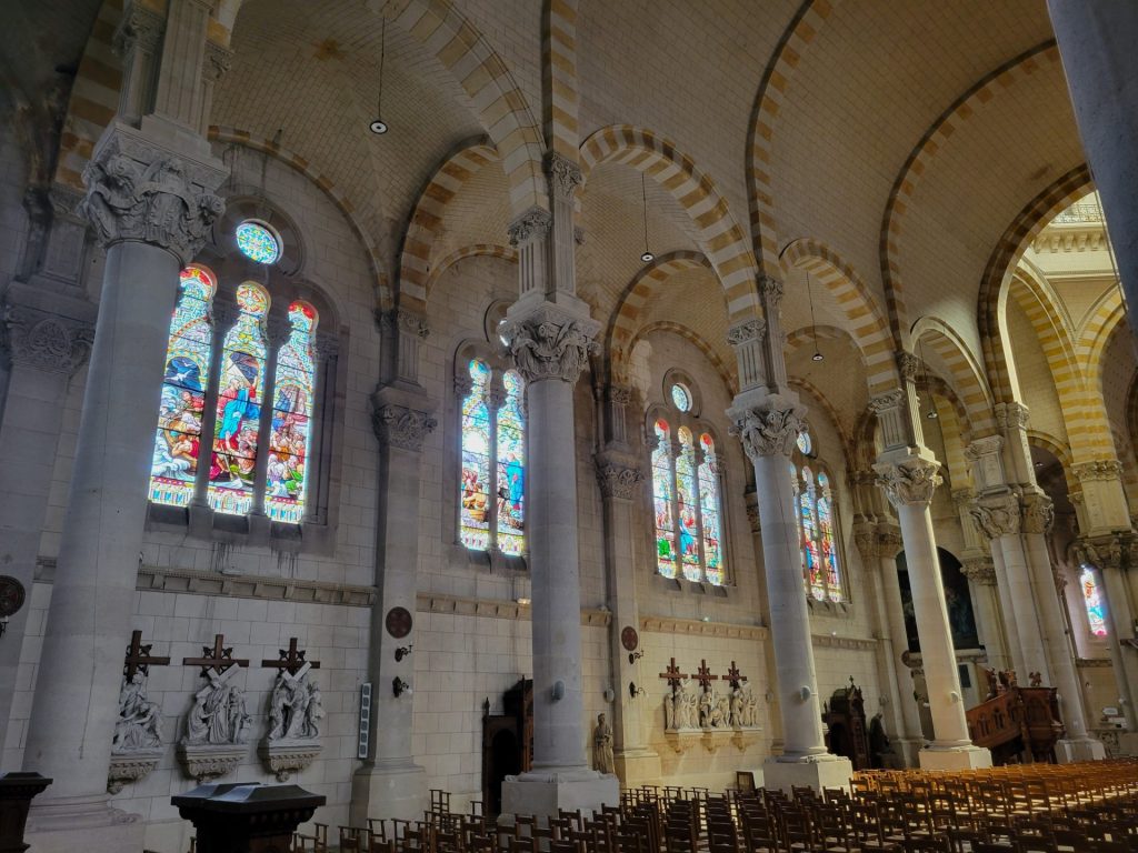 On the far west side of town is the Sacred Heart Basilica. While there were several large churches in Nancy, this was the best one. This grand worship building has all of the high ceilings, stained glass, and interesting architecture that we expected. But what it didn’t have were other people. We visited on a Saturday afternoon in the summer and had the entire place to ourselves for the 20 minutes we were there. There were no other visitors. There wasn’t even a worker! It was a little strange, but also quite peaceful. That was a definite surprise and a first for us.