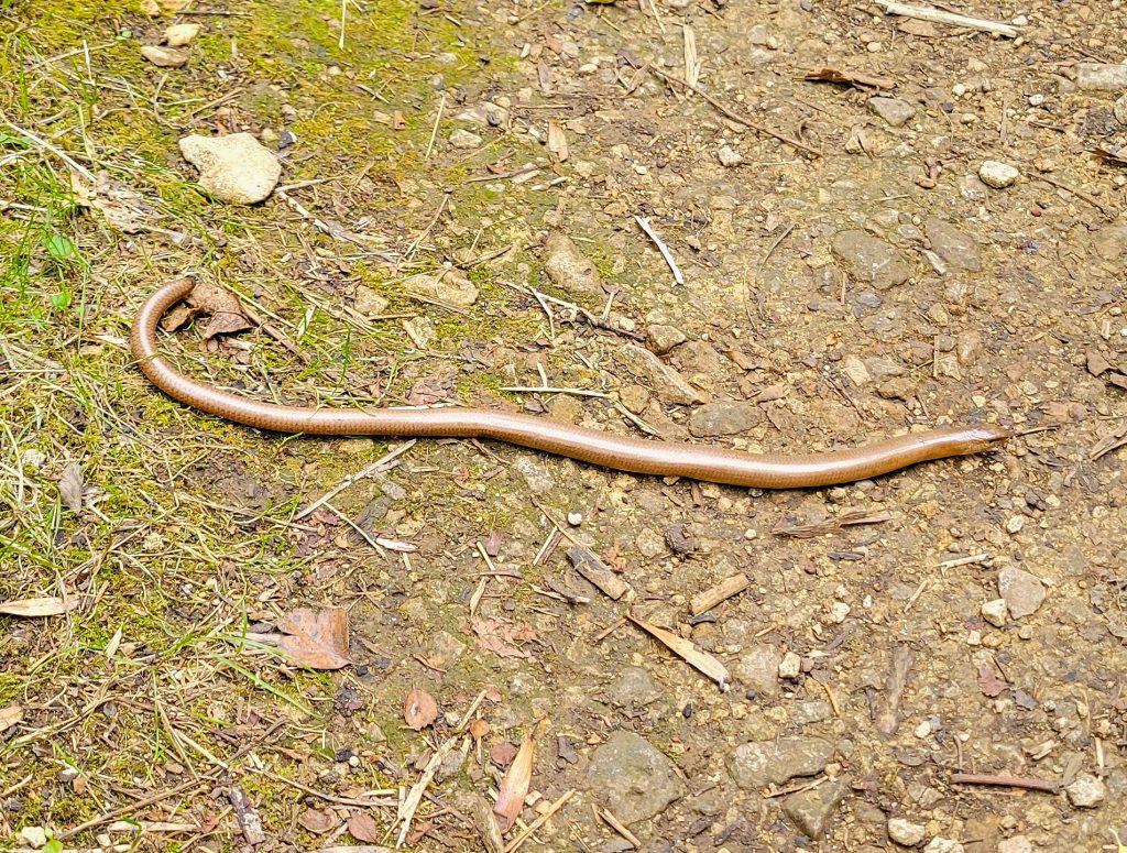 Among these pathways we encountered several cats and what we thought was a snake, but it wasn’t a snake at all. It turned out to be a legless lizard! (It was probably a slow worm, but it’s hard to know for sure.) Unlike a snake, the legless lizard has eyelids and ear holes, but does not have a forked tongue nor can it unhinge its jaw. Despite looking similar, they are not all that closely related. That was a new one for us.