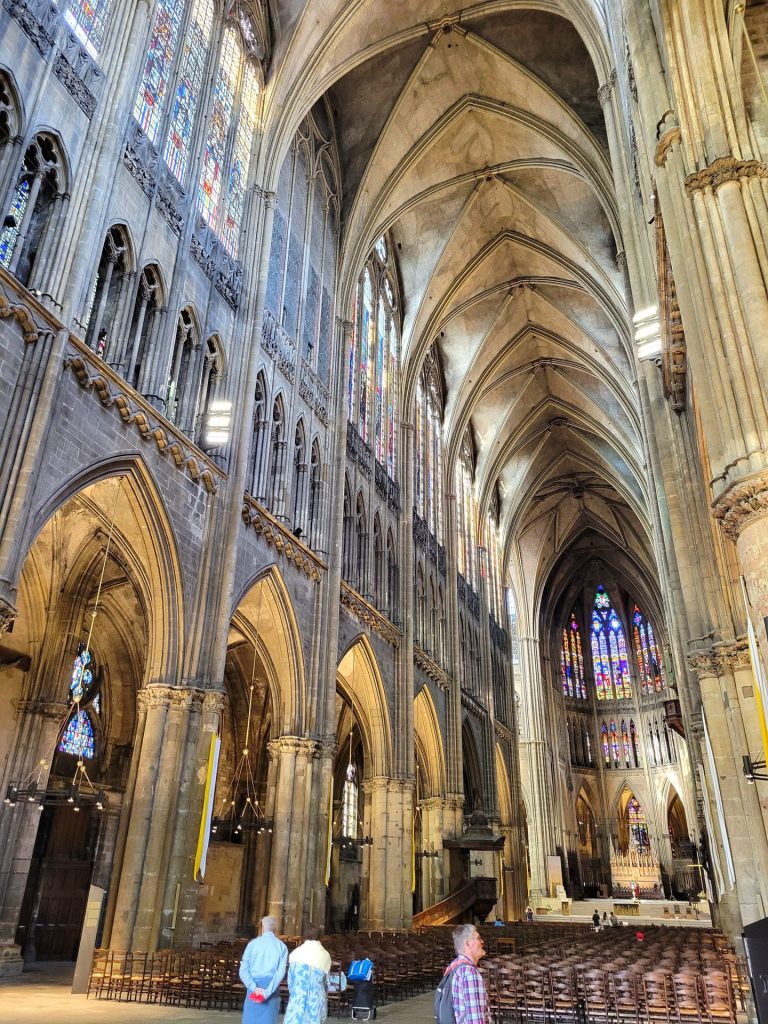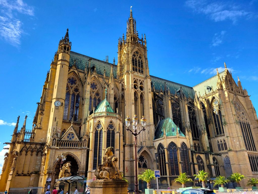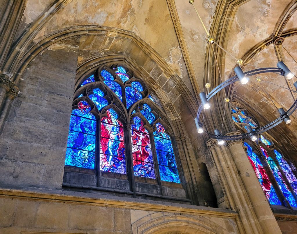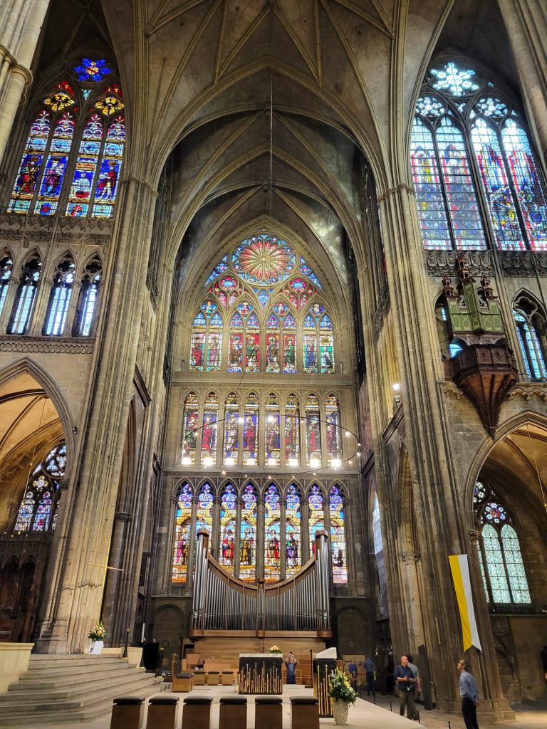 The other main attraction that we were able to catch in Metz was the Metz Cathedral. It’s a grand classical cathedral with very high ceilings and somewhat ridiculous amounts of stained glass. A portion of that stained glass was designed by Marc Chagall and in typical Chagall-fashion, it’s very vivid and colorful. The church is massive and packed with detailed religious art. It is a very impressive building.